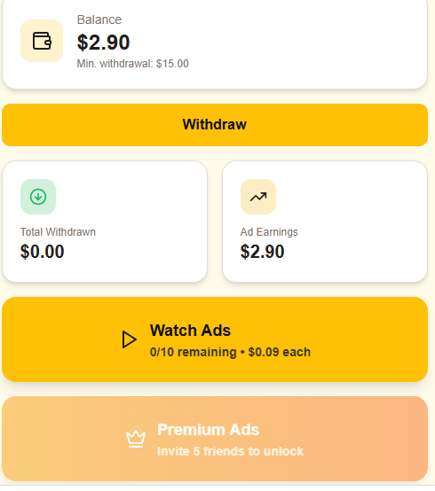 Users earn balance inside dashboard